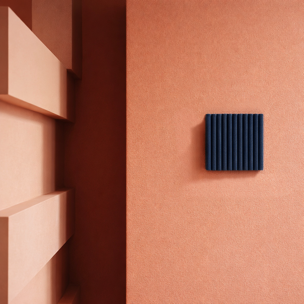 Die Fläche wirkt geschlossen, ruhig und präzise – ein klares Quadrat im Raum. Die linear angeordneten, sanft gerundeten Rippen verleihen dem Schalter Struktur und eine bewusst inszenierte Haptik.