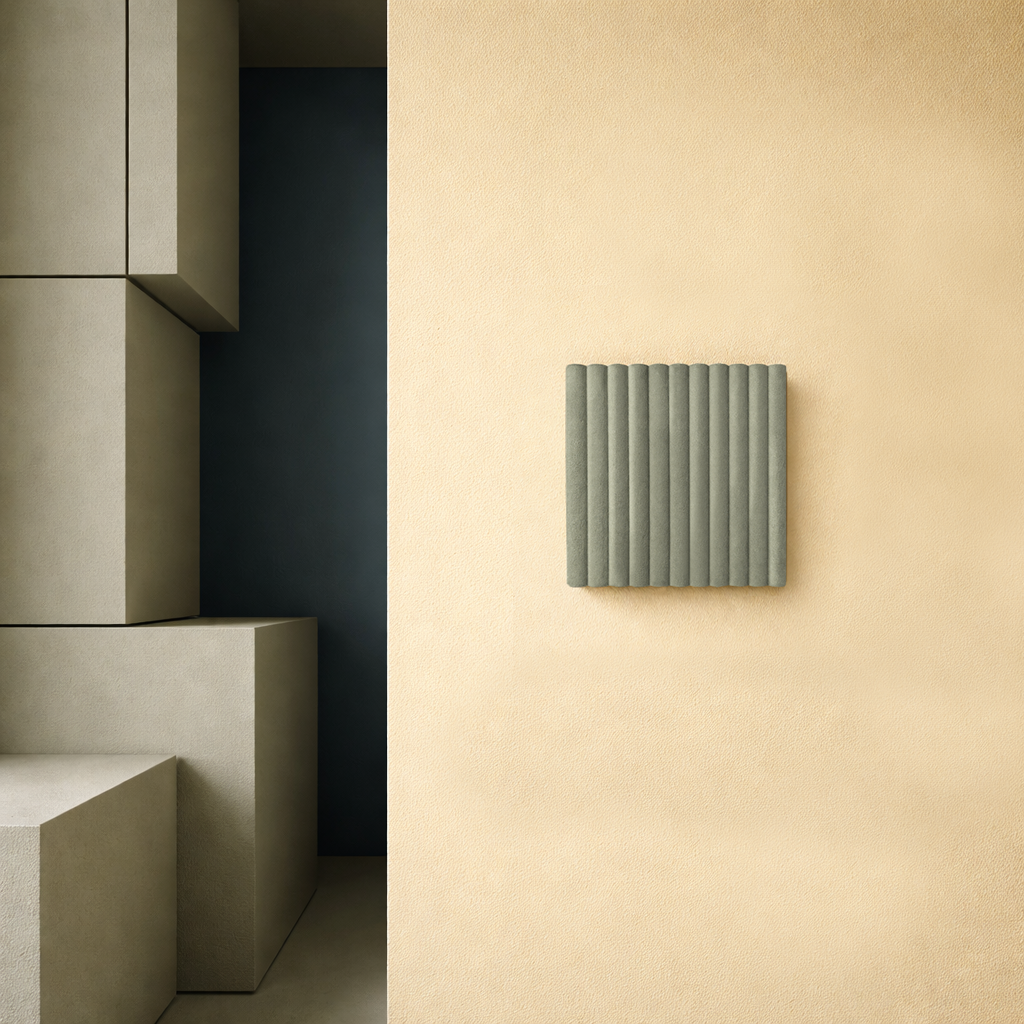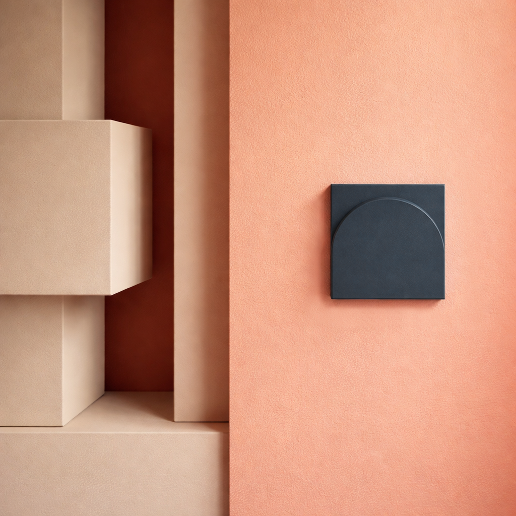 Die leicht strukturierte Oberfläche verleiht dem Material eine subtile Tiefe und schafft ein haptisches Erlebnis, das man sehen und fühlen möchte. Jeder Druck wird zu einer bewussten Geste. Die Kombination aus klarer Geometrie und rauer Textur erzeugt einen spannungsvollen Kontrast – präzise und sinnlich zugleich. Le Petit Art – ein kleines Kunstwerk an der Wand.